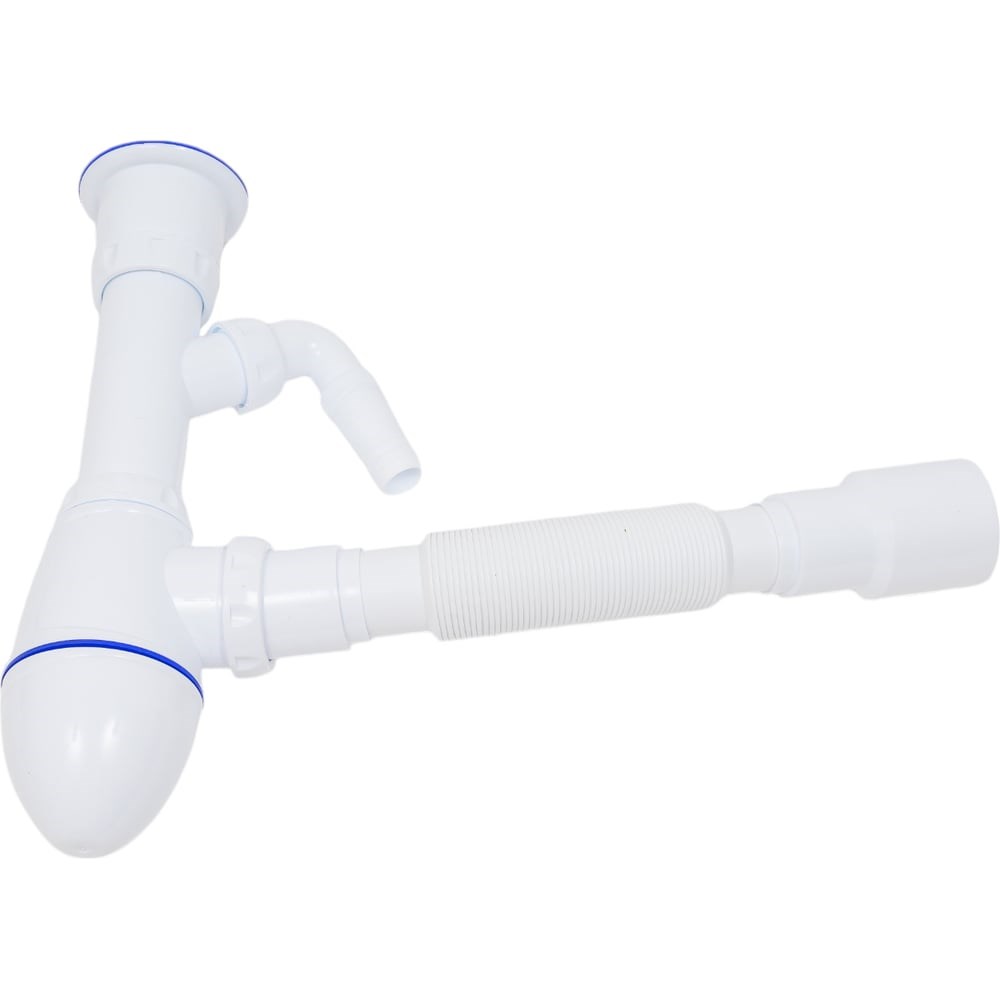 Сифон для умывальника Unicorn 1.1/2"х40, нержавеющий выпуск, отвод для стиральной машины, винт 80мм, с универсальной гибкой трубой, 40х40/50 A320V ИС.110314 533255