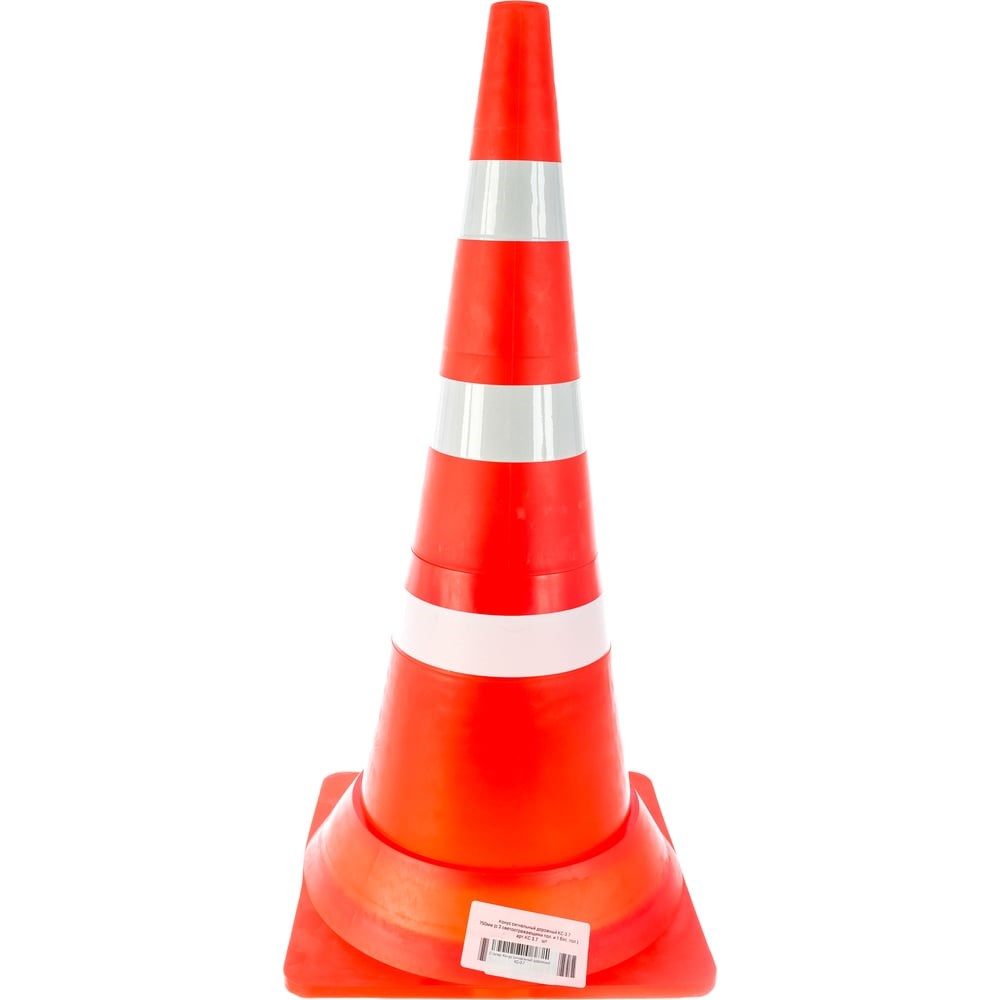 Сигнальный дорожный конус Сталер КС-3.7 используется для ограждения: парковочного места; аварийного или ремонтируемого участка дороги; места дорожно-транспортного происшествия. Модель имеет высоту 750 мм. Две светооотражающие полосы легко заметны в свете фар в ночное время. Третья полоса конуса - белая.