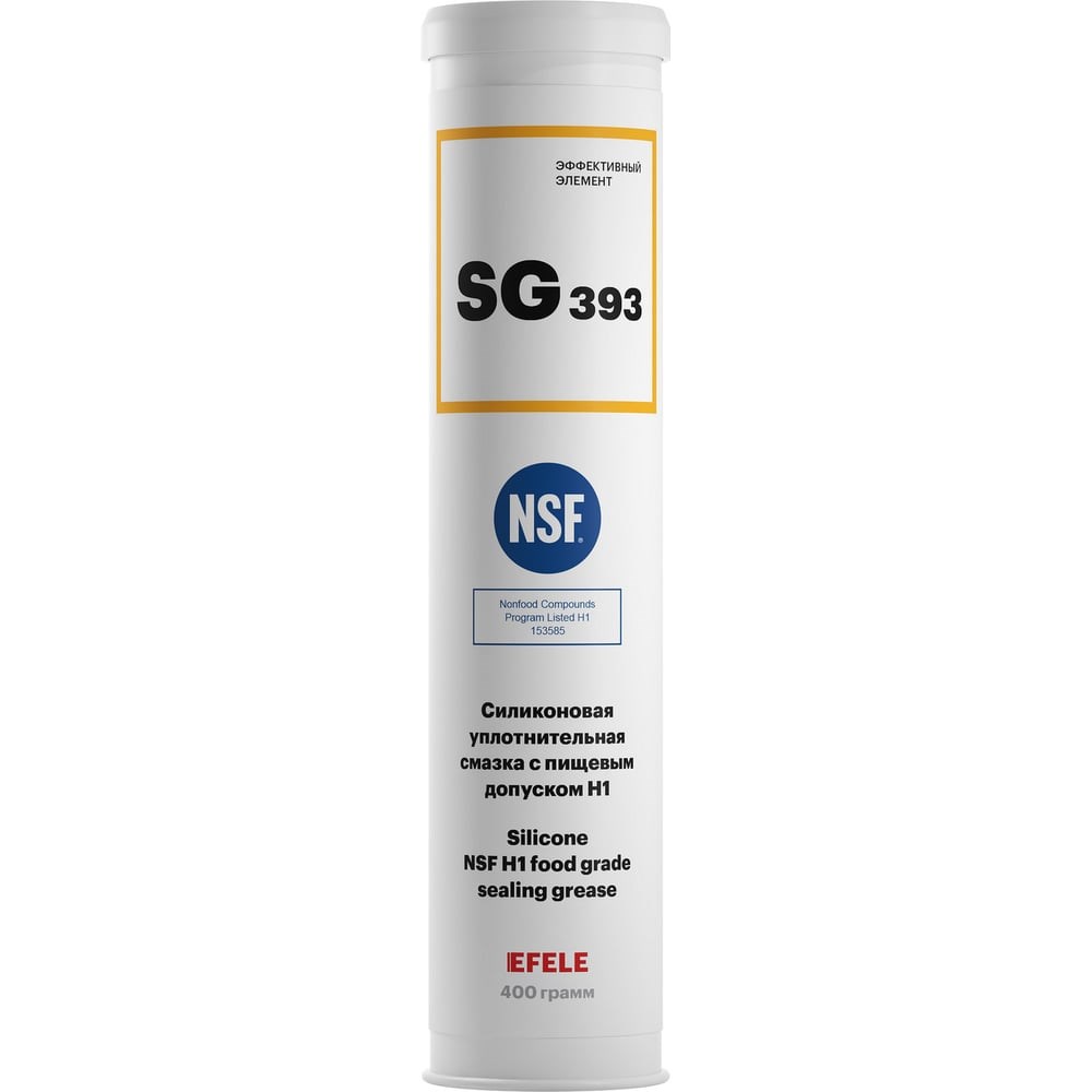 Силиконовая смазка с пищевым допуском EFELE SG-393 - уплотнительная морозо- и термостойкая пластичная смазка с пищевым допуском на основе высоковязкого силиконового базового масла и политетрафторэтилена. Устойчива к смыванию водой, совместима с большинством пластмасс, эластомеров и керамическими уплотнителями. Подходит для применения в системах газо- и водоснабжения. Диапазон рабочих температур: -40 °C...+160 °C Морозостойкость Термостойкость Работоспособность во влажной среде Пищевой допуск NSF H1 (возможен случайный контакт с продуктами питания) Устойчивость к смыванию водой