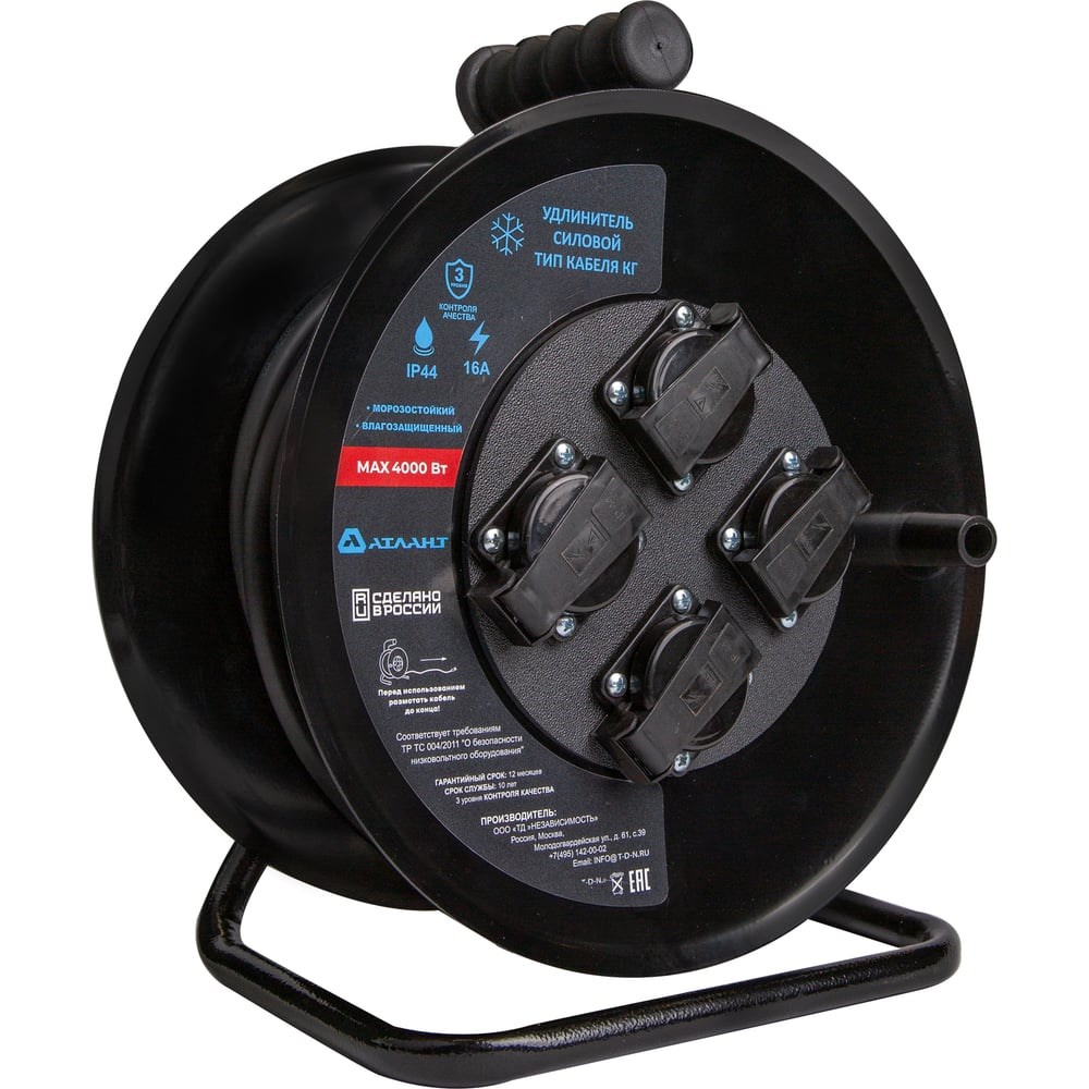 Силовой удлинитель на металлической катушке АТЛАНТ КГ 3500 Вт 30м IP 44 (с заземлением) 50031
