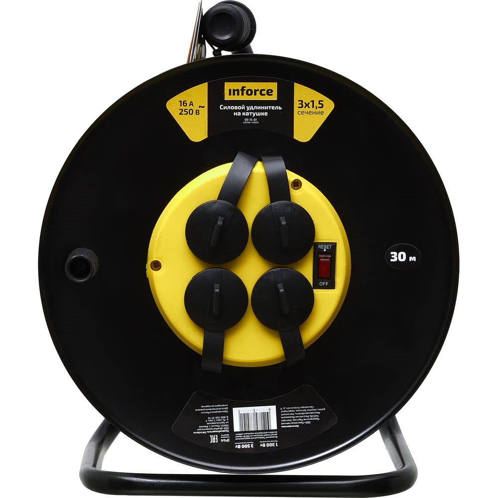 Силовой удлинитель на катушке Inforce 4 гнезда, с/з КГт 3х1,5 16A 30м IP44 GRANITE ZG 09-15-01 предназначен для использования в тяжелых условиях. Удлинитель можно применять на стройках, на производстве, а так же на открытом воздухе. Кабель изготовлен по ГОСТ 31223-2012. Морозостойкий кабель типа КГ с сечением 3х1,5 мм² обеспечивает долговечность и устойчивость к механическим повреждениям. Металлическая катушка обеспечивает прочность и устойчивость конструкции. Удлинитель имеет степень защиты IP44 и может эксплуатироваться при температуре от -60 до +40°С. Защитные крышки на розетках предохраняют от попадания пыли и влаги, продлевая срок службы удлинителя. Термовыключатель добавляет дополнительный уровень безопасности, предотвращая перегрев. Заземляющий кабель защищает от поражения электрическим током.