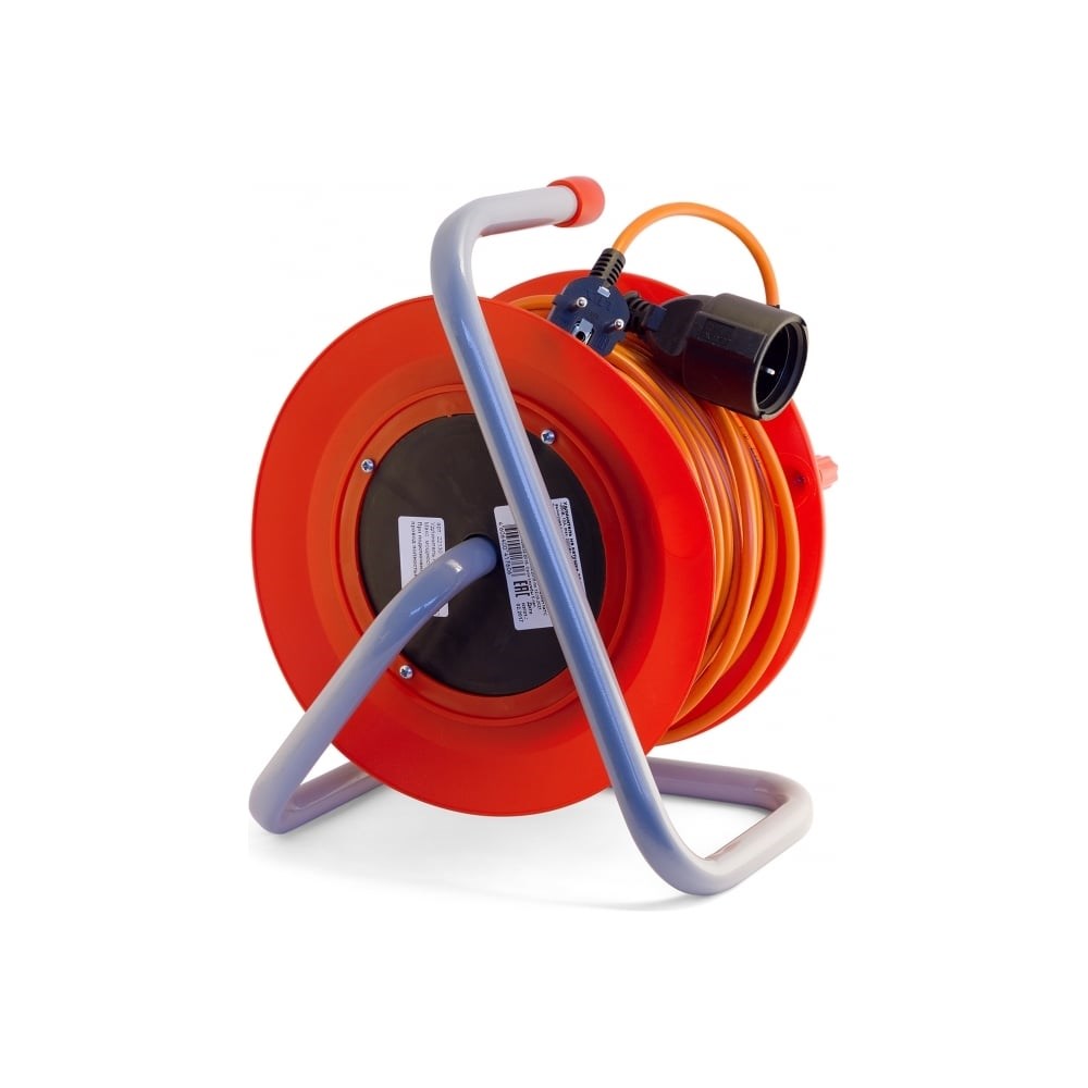 Силовой удлинитель на катушке К1-Е-40 ПВС 3x0.75 40м с заземлением LUX 4606400417613 является практичным и безопасным приспособлением для присоединения электрических приборов, которые расположены на удалении от основного источника сети. Провод ПВС 3х0,75 расположен на пластиковой катушке. Изделие отличается устойчивостью, благодаря металлической треноге с рукояткой для удержания удлинителя. На лицевой панели расположена ручка для сматывания провода после использования.