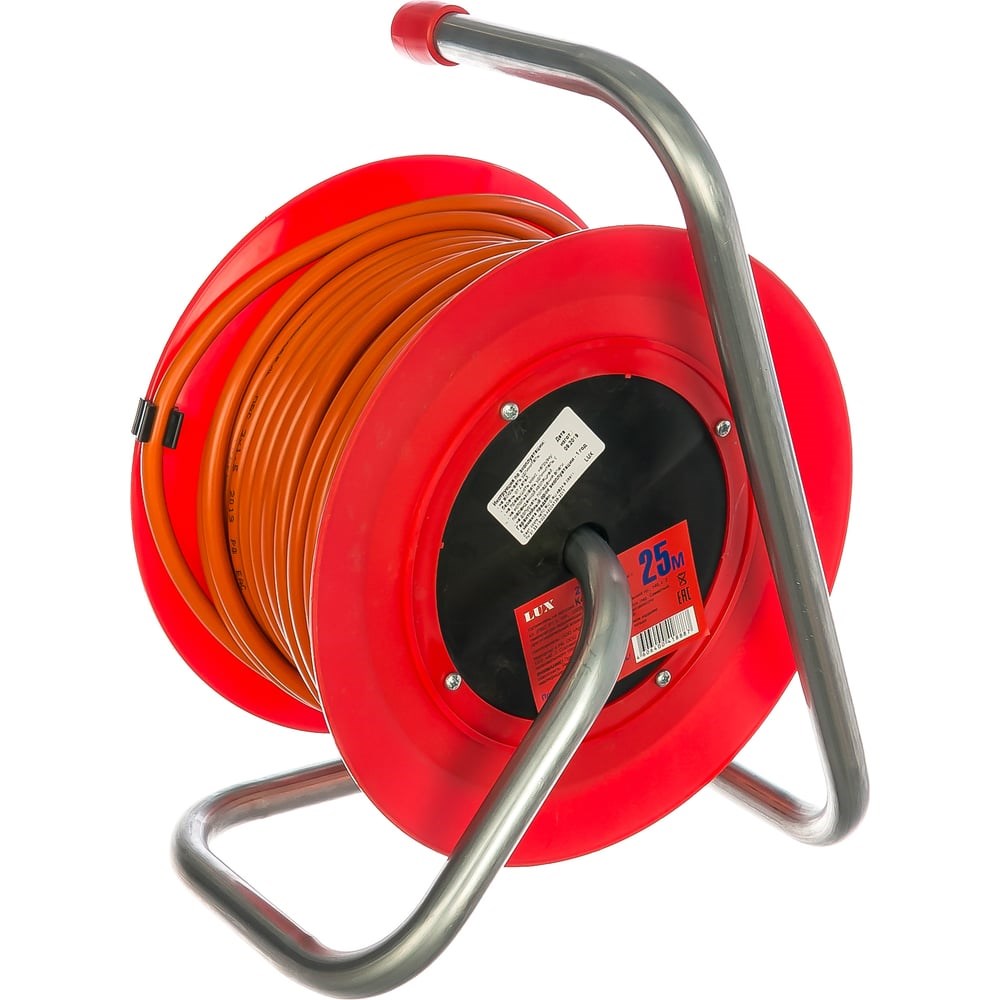 Силовой удлинитель на катушке К4-Е-25 25м 4 гнезда, заземление LUX 4606400418887 служит для работы на строительной площадке или на дачном участке. Катушка оснащена четырьмя гнездами, что позволяет присоединять сразу несколько электрических приборов подряд. Провод ПВС 3х1.5 оснащен неразборной литой вилкой. Катушка не дает спутываться проводу длиной 25 метров. Заземление предназначено для безопасного использования удлинителя.