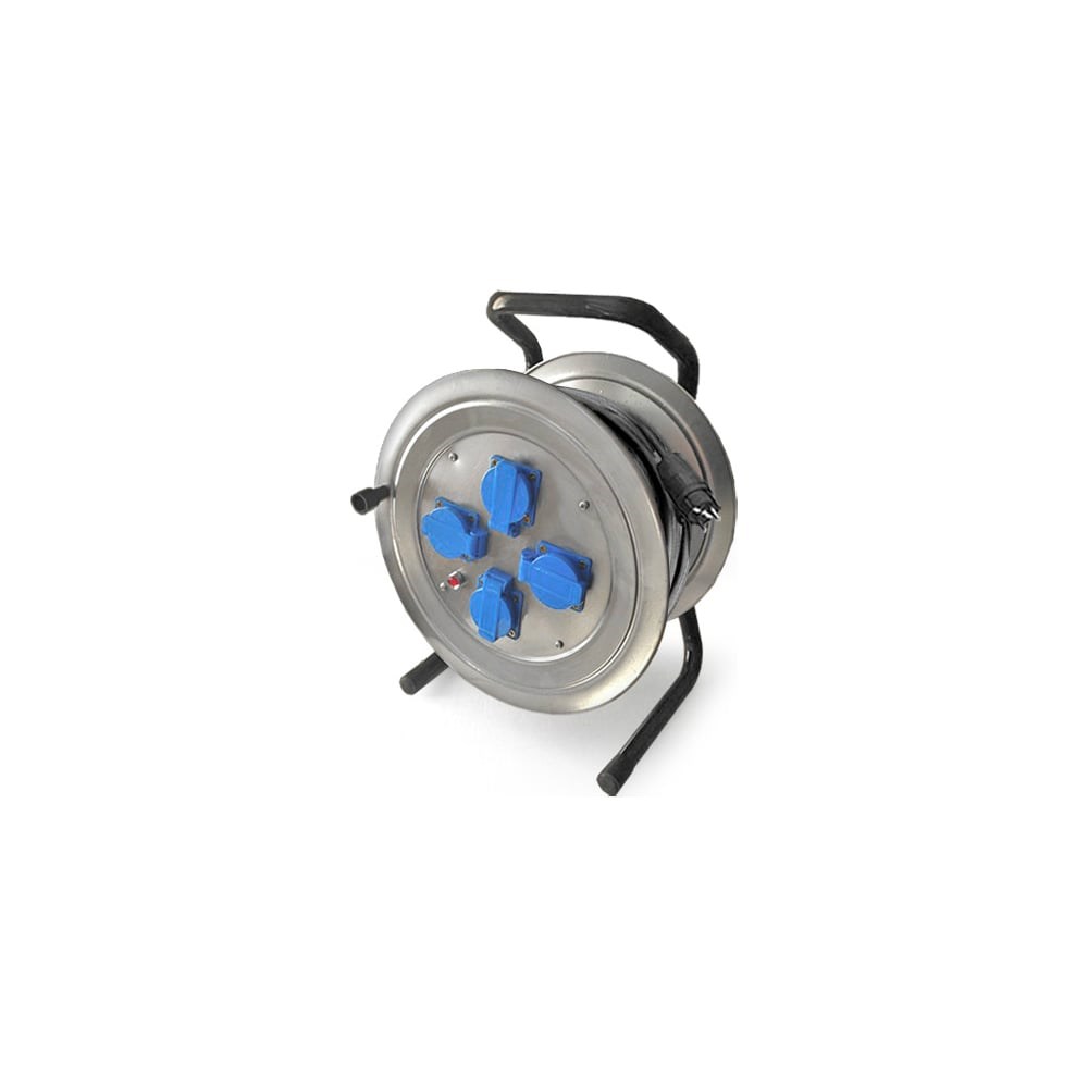 Силовой удлинитель на металлической катушке с 4 гн. 50м Союз 481S-3905 используется на строительных, производственных и ремонтно-монтажных площадках для возможности подключения одновременно до четырех электрических устройств, находящихся на расстоянии до 50 метров от стационарной сети электропитания. Изделие имеет повышенный рабочий ресурс, его катушка и стойка полностью выполнены из прочного металла, каждая розетка дополнительно защищена крышкой от попадания влаги.