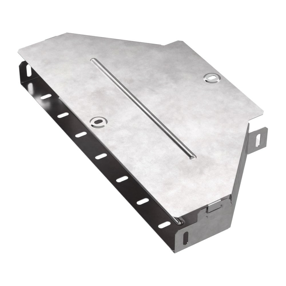 Аксессуары изготовленные из стали с защитным покрытием по методу Сендзимира – это изделия, на которых защитное цинковое покрытие было нанесено на листовую сталь перед изготовлением. Толщина защитного покрытия варьируется от 10 до 22 мкм. Климатическое исполнение изделий УХЛ2, что предусматривают эксплуатацию в помещении и под навесом, при температуре эксплуатации от -80 до +150°С. Переходник симметричный предназначен для перехода с одной ширины лотка на другую. В комплект входит крышка.