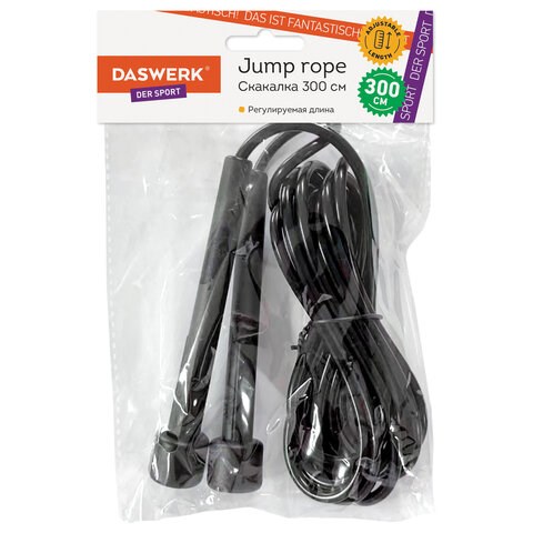 Скакалка спортивная 300 см, ПВХ, регулируемая длина, черная, DASWERK (ДАСВЕРК), 680027