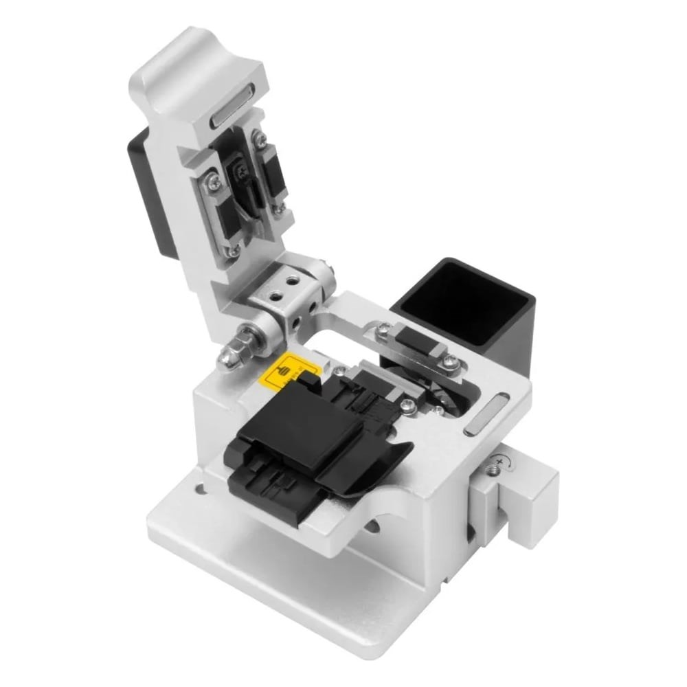 Прецизионные скалыватели оптических волокон — наиболее простые и часто используемые инструменты для скалывания оптического волокна перед процессом сварки или какого-либо другого вида механического соединения. Устройства получили популярность благодаря высокому качеству скола волокна, неприхотливости в работе и простоте обслуживания. Современные скалыватели позволяют осуществлять сколы волокон под углом 90±0,5°, что удовлетворяет требованиям любых сварочных аппаратов. Является бюджетной моделью, не уступающей при этом по качеству скола скалывателям других производителей (погрешность угла скола составляет не более 0,5°). Новая модель скалывателя SNR имеет малые габаритные размеры и вес, а также снабжена съемным контейнером для сбора осколков. Укомплектован прецизионным лезвием, выполняющим высокоточный скол оптического волокна. Ресурс данного ножа составляет 48 000 циклов (2000 сколов х 24 позиции ножа). В комплект поставки входит жесткий кейс и шестигранный ключ, предназначенный для регулировки положения лезвия. максимальная погрешностьугла скола 90° ± 0,5°; компактные размеры; cъемный контейнер для сбора осколков; универсальный прижим, позволяющий работать с FTTx-кабелем.