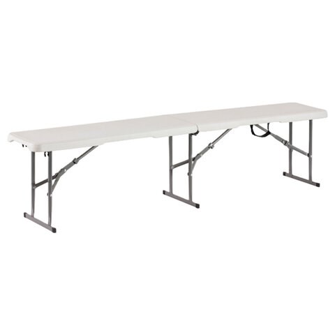 - В сложенном виде скамья компактна (900 х 280 мм) и удобна для транспортировки, идеально подходит для кейтеринга, выездной торговли, спортивных и городских мероприятий.