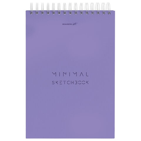 Скетчбук, белая бумага 100 г/м2, 140х201 мм, 60 л., гребень, жёсткая подложка, BRAUBERG ART, Minimal сиреневый, 116901