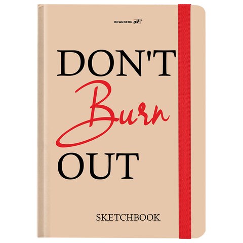 Скетчбук, белая бумага 80 г/м2, 145х203 мм, 80 л., резинка, твердый, BRAUBERG ART, "Don't burn out", 116893