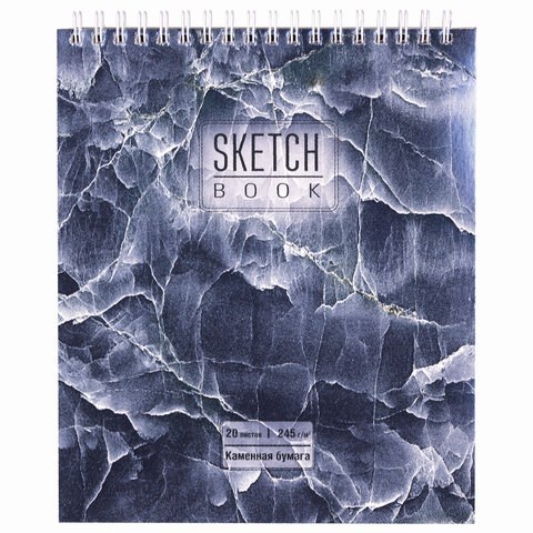 Скетчбук, каменная бумага 245 г/м2, 170х195 мм, 20 л., гребень, подложка, холодная фольга, "Мрамор", 98627