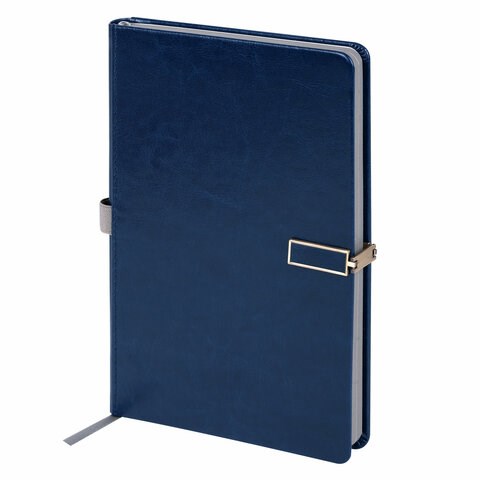 Скетчбук, слоновая кость 140 г/м2 130х210 мм, 80 л., КОЖЗАМ, застежка металл, BRAUBERG ART CLASSIC, "Inspiration", под кожу, синий, 116465