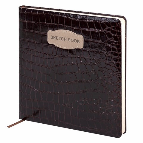 Скетчбук, слоновая кость 140 г/м2, 200х200 мм, 80 л., КОЖЗАМ, резинка, BRAUBERG ART CLASSIC, CROCO, коричневый, 116473