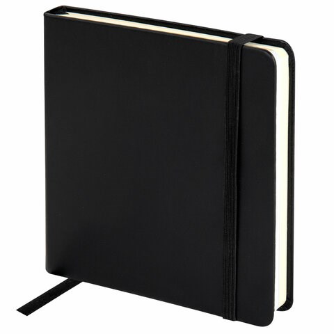 Скетчбук, слоновая кость+белая 140 г/м2, 120х120 мм, 80 л., КОЖЗАМ, резинка, BRAUBERG ART CLASSIC, черный, 116872