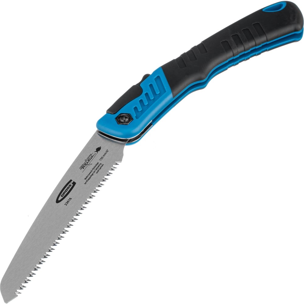 Складная пила по дереву Gross PIRANHA 23616 для кемпинга и сада с 2-компонентной рукояткой, полотном длиной 150 мм, подкаленными зубьями с шагом 9-10 TPI и 3D-заточкой, пригодится на пикнике, в походе или на дачном участке. Предназначена для продольной и поперечной распиловки древесины, подходит также для работ с фанерой, ДВП и ПВХ. Характеристики режущей кромки соответствуют требованиям всех международных стандартов: зубья с трехгранной заточкой и шагом 9-10 TPI обеспечивают быстрый и ровный распил. Благодаря складной конструкции пилу очень удобно хранить и брать с собой в поездки.