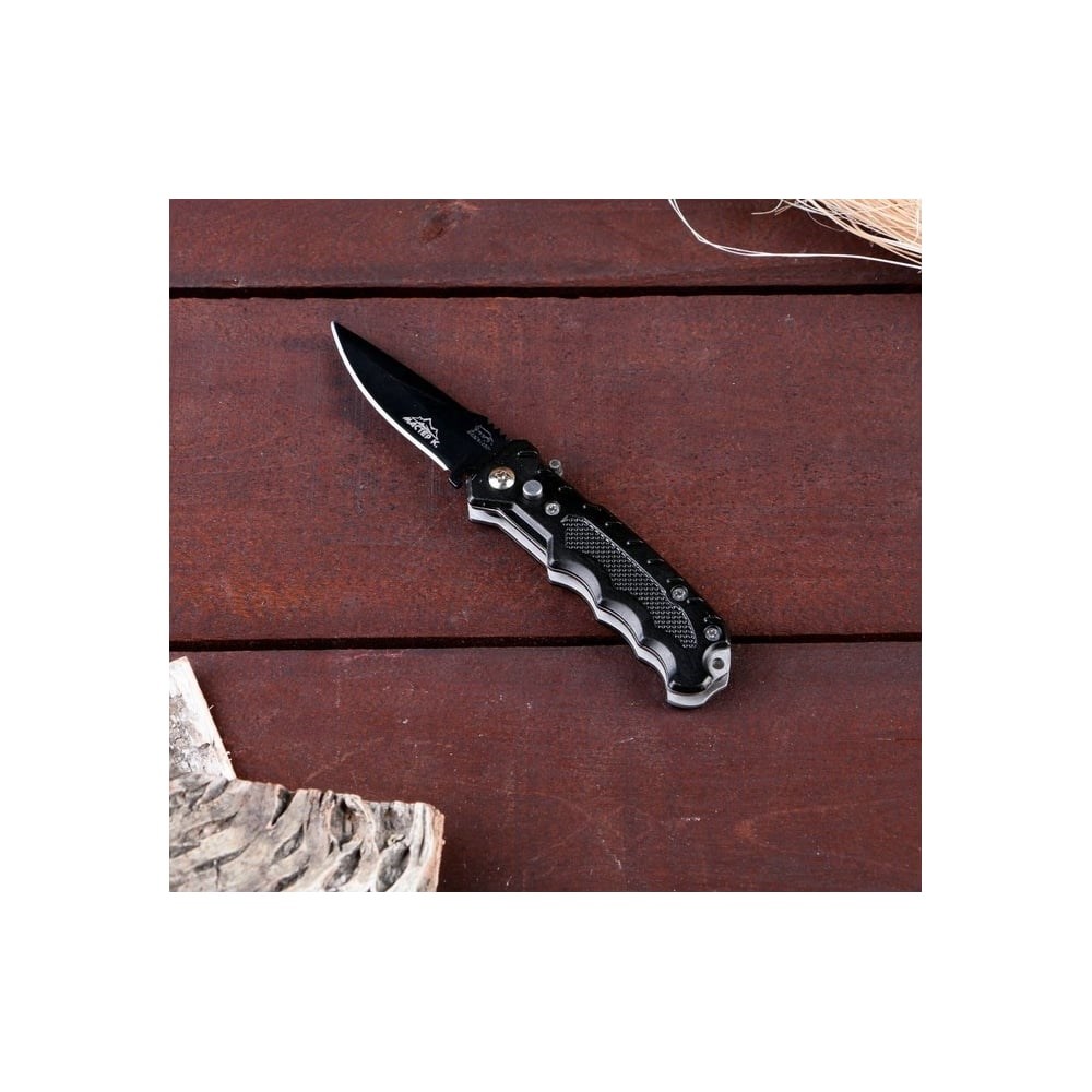 Складной автоматический нож Мастер К рукоятка галочки, кнопка, фонарик 288592