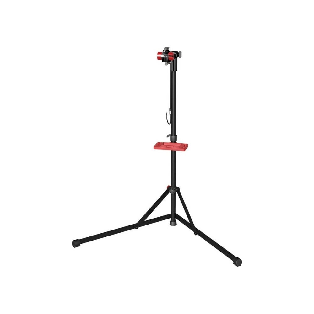 Ремонтный складной велостенд Сорокин 16.107 предназначен для ремонта велосипеда. Размещен на отдельно стоящей стойке и имеет три прорезиненные опоры, лоток для инструмента и механизмы быстрой регулировки. Для фиксации рулевой колонки предусмотрена регулируемая тяга. Велостенд изготовлен из композитных материалов. Зажим для крепления велосипеда может поворачиваться вокруг оси несущего профиля рамы и оснащен механизмом быстрой фиксации. Зев зажима оборудован резиновыми вставками. Когда стенд не используется, его можно компактно сложить.