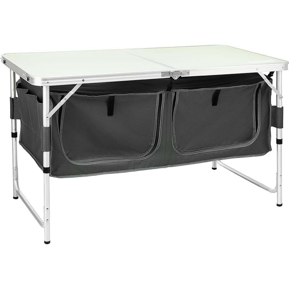 Складной стол с отделом под посуду Helios HS-TA-519 96436 со специальными отделениями из плотной ткани (два основных отделения, 2 отделения по бокам для хранения столовой утвари продуктов питания, напитки). Идеально подойдет для пикника, туристического похода или дачи. В комплект входит чехол для перевозки в собранном виде.