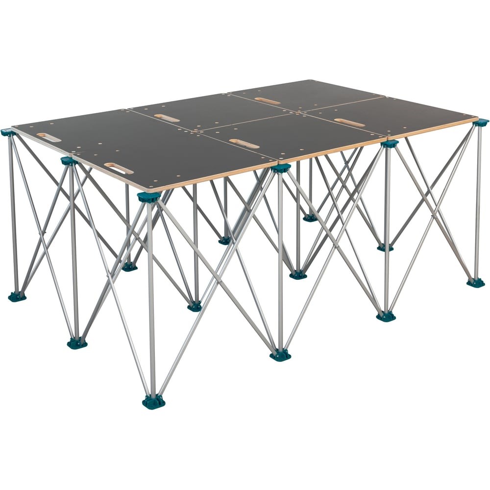 Столы Q4 Ant – это удобная организация рабочего места. Стол Ant используется на строительных объектах и в быту, в гараже и на даче. Может использоваться для выполнения столярных, слесарных, сборочных, раскроечных, малярных, упаковочных и любых других видов работ. Можно использовать как стол - верстак - подмости. Подстолье имеет комфортную высоту 90см. Состоит из 6 столешниц и подстолья, состоящего из вертикально расположенных опорных стоек, работающих по принципу телескопа. Стойки стола изготовлены из анодированного алюминиевого профиля. Опоры - из полиамида, самого ударопрочного пластика, стойкого к истиранию и позволяющего выдерживать высокую нагрузку. Столешницы -без перфорации, изготовлены из влагостойкой ламинированной фанеры 18 мм. Особенностью стола является его модульность. Конструкция позволяет быстро собирать различные конфигурации повышенной прочности и жёсткости. Одна секция стола 600х600 мм выдерживает равномерно распределенную нагрузку до 300 кг. Рекомендованная нагрузка при конфигурации стола 3х4 - 1800 кг на весь стол.
