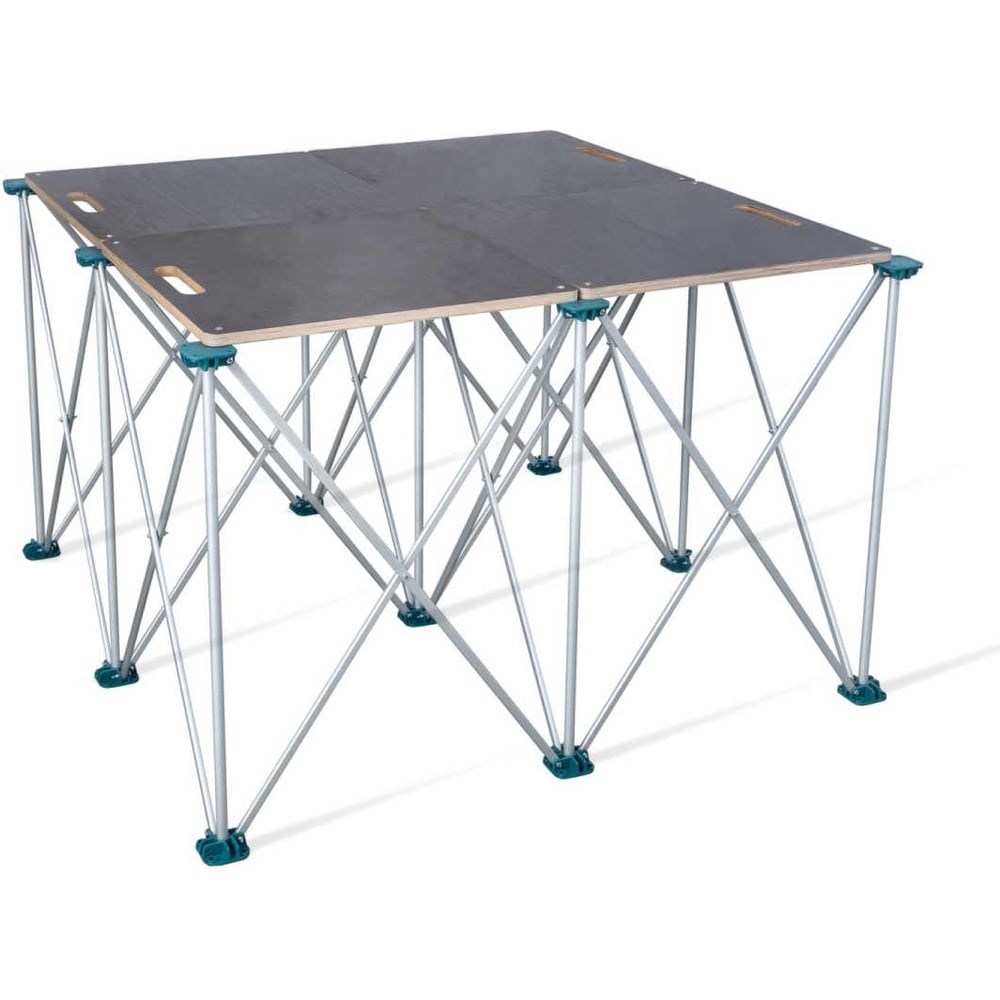 Стол Q4 Ant – это удобная организация рабочего места. Стол Ant используется на строительных объектах и в быту, в гараже и на даче. Может использоваться для выполнения столярных, слесарных, сборочных, раскроечных, малярных, упаковочных и любых других видов работ. Можно использовать как стол - верстак - подмости. Стол имеет комфортную высоту 90см. Состоит из 4-х столешниц и подстолья, состоящего из вертикально расположенных опорных стоек, работающих по принципу телескопа. Стойки стола изготовлены из анодированного алюминиевого профиля. Опоры - из полиамида, самого ударопрочного пластика, стойкого к истиранию и позволяющего выдерживать высокую нагрузку. Столешница: без перфорации, изготовлена из влагостойкой ламинированной фанеры 18 мм. Особенностью стола Ant является модульность. Конструкция позволяет быстро собирать различные конфигурации повышенной прочности и жёсткости. Одна секция стола 600х600 мм выдерживает равномерно распределенную нагрузку до 300 кг. Рекомендованная нагрузка при конфигурации стола 3х3 - 1200 кг на весь стол.
