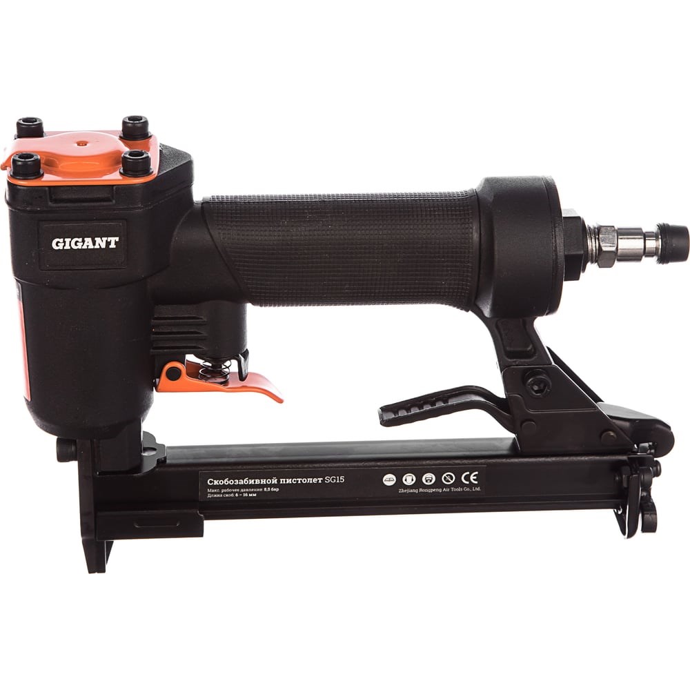 Скобозабивной пистолет Gigant SG15 предназначен для скрепления различных материалов между собой. В качестве оснастки используются скобы типа Ga21. Долговечность. Патрубок подачи воздуха закален, что обеспечивает долгий срок службы пистолета. Комфорт. Инструмент имеет облегченную конструкцию, благодаря чему можно комфортно работать в течение продолжительного времени. Безопасность эксплуатации. Предусмотрен предохранитель от случайного нажатия курка.