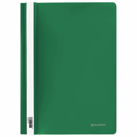 Скоросшиватель пластиковый BRAUBERG, А4, 130/180 мкм, зеленый, 220414