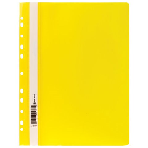 Скоросшиватель пластиковый с перфорацией BRAUBERG, А4, 140/180 мкм, желтый, 226587