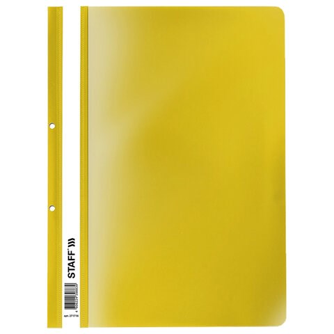 Скоросшиватель пластиковый с перфорацией STAFF, А4, 100/120 мкм, желтый, 271716