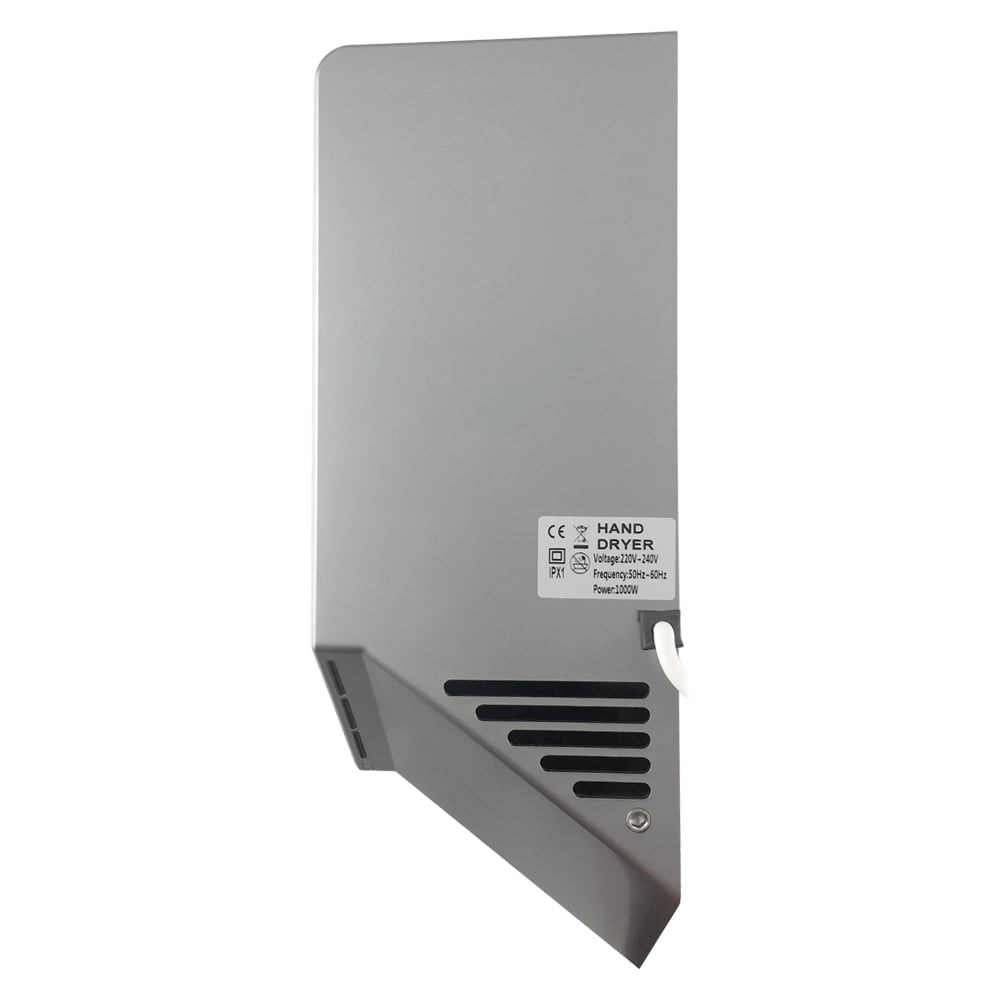 Сушилка для рук G-teq 8860 PS скоростная, 1 кВт, пластик серебро 12.59 представляет линейку премиум устройств бренда G-teq. Воздушная струя подается с двух сторон под углом, ускоряя процесс сушки рук до 12 секунд.