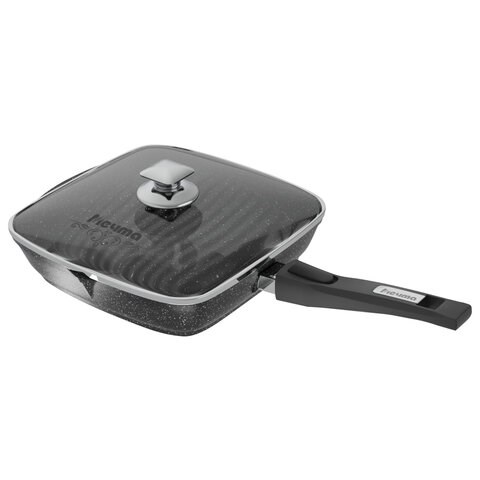 Сковорода ГРИЛЬ квадратная 26 см, съемная soft-touch ручка, крышка, антипригарное покрытие, МЕЧТА "Гранит Black", с066802