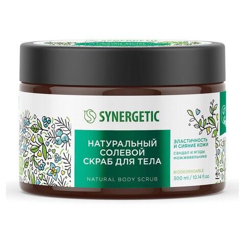 Скраб для тела 300 мл, SYNERGETIC "Сандал и ягоды можжевельника" натуральный, солевой, 800001
