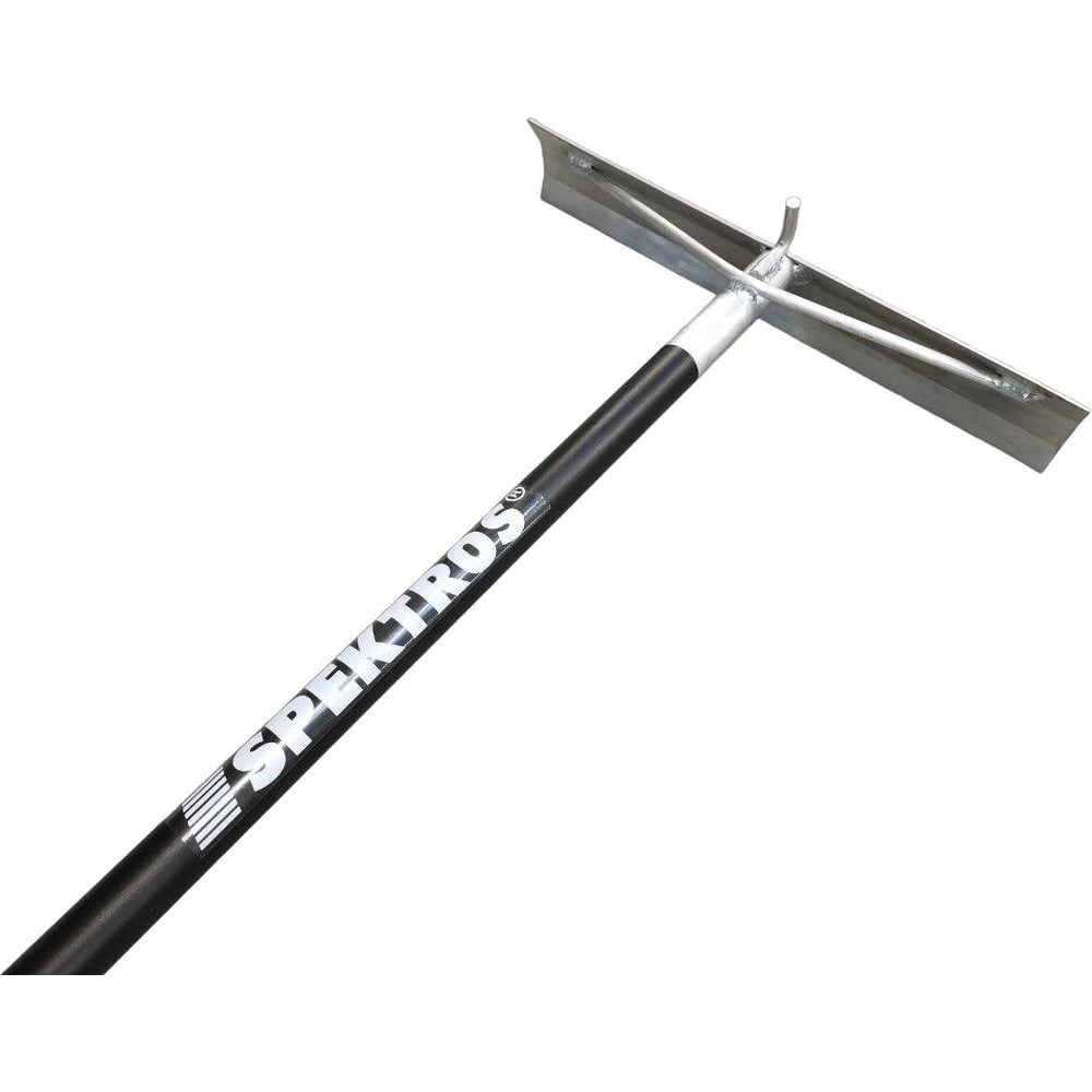 Скребок для бетона SPEKTROS с крючком 9004 используется для распределения бетона, гранотсева, песка.Скребок для бетона используют, чтобы равномерно распределить бетон или цементно-песчаную смесь при их укладке.Лезвие, размером 100х500 мм, выполнено из спецалюминия, снабжено крючком для поднятия арматуры. Ручка прямая, длиной 1,5 м.. В зависимости от партии - цвет товара может быть изменен.