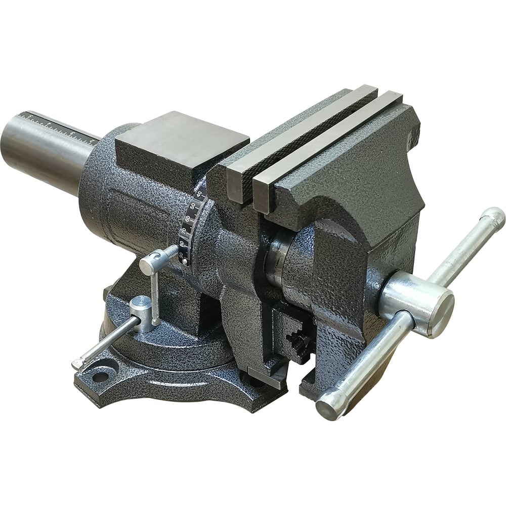 Универсальные многофункциональные слесарные тиски позволяют фиксировать заготовку размером до 150 мм. Наличие функций поворота на 360 градусов и наклона губок (на любой угол) обеспечивает максимальную функциональность модели. Две рабочие зоны - со стандартными губками и каскадом губок для зажатия цилиндрических заготовок Наковальня, размером 80х65 мм, способствует удобству эксплуатации. Крепление к рабочей поверхности осуществляется с помощью болтов через специальные отверстия.