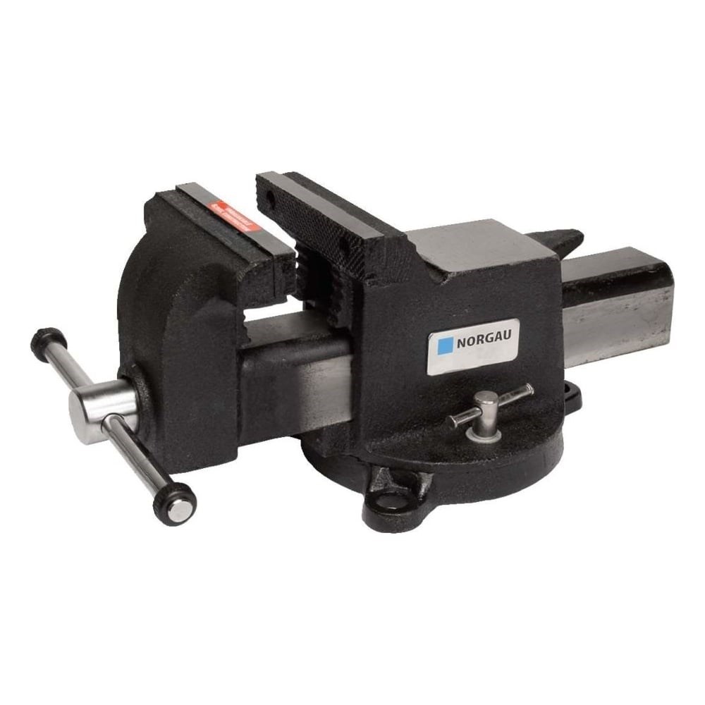 Параллельные поворотные слесарные тиски 175 mm NORGAUN 410-175 073004175 используются на производственных площадках, в мастерских, в частных хозяйствах и автосервисах. Сменные зубчатые губки изготавливаются из стали, что гарантирует надежную фиксацию заготовок любой формы. Наличие большой наковальни дает возможность с комфортом выполнять различные мелкие операции.