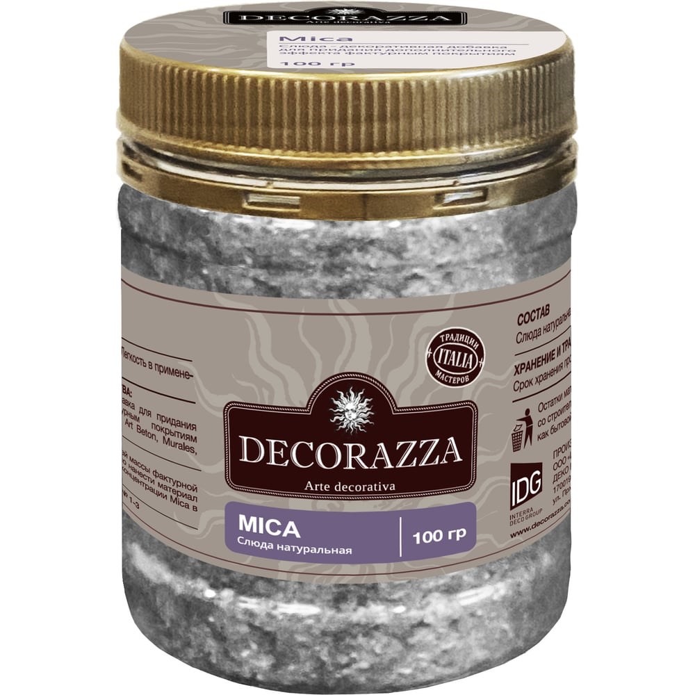 Слюда - декоративная добавка для фактурных штукатурок DECORAZZA DEC MICA 100 г DMC-100 предназначена для придания дополнительного эффекта фактурным покрытиям TravertinoNaturale, Traverta, Romano, ArtBeton, Murales, Sollievo. Продукт не меняет основных свойств отделочных материалов, придает им особую выразительность и уникальность. Натуральный состав безопасен для человека и окружающей среды.