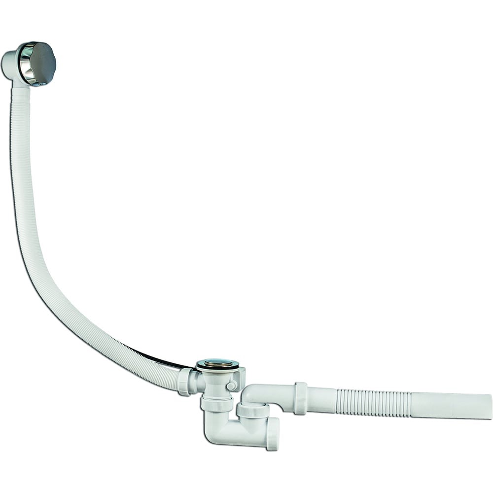 Слив-перелив для ванны VIRPLAST Универсал полуавтомат вентиль и клапан латунь 30982476 подходит для всех видов ванн. Гидрозатвор 50 мм Выход в канализацию 40/50 мм Сифон, ориентируемый по горизонтали, с возможностью прочистки через ревизионное окошко