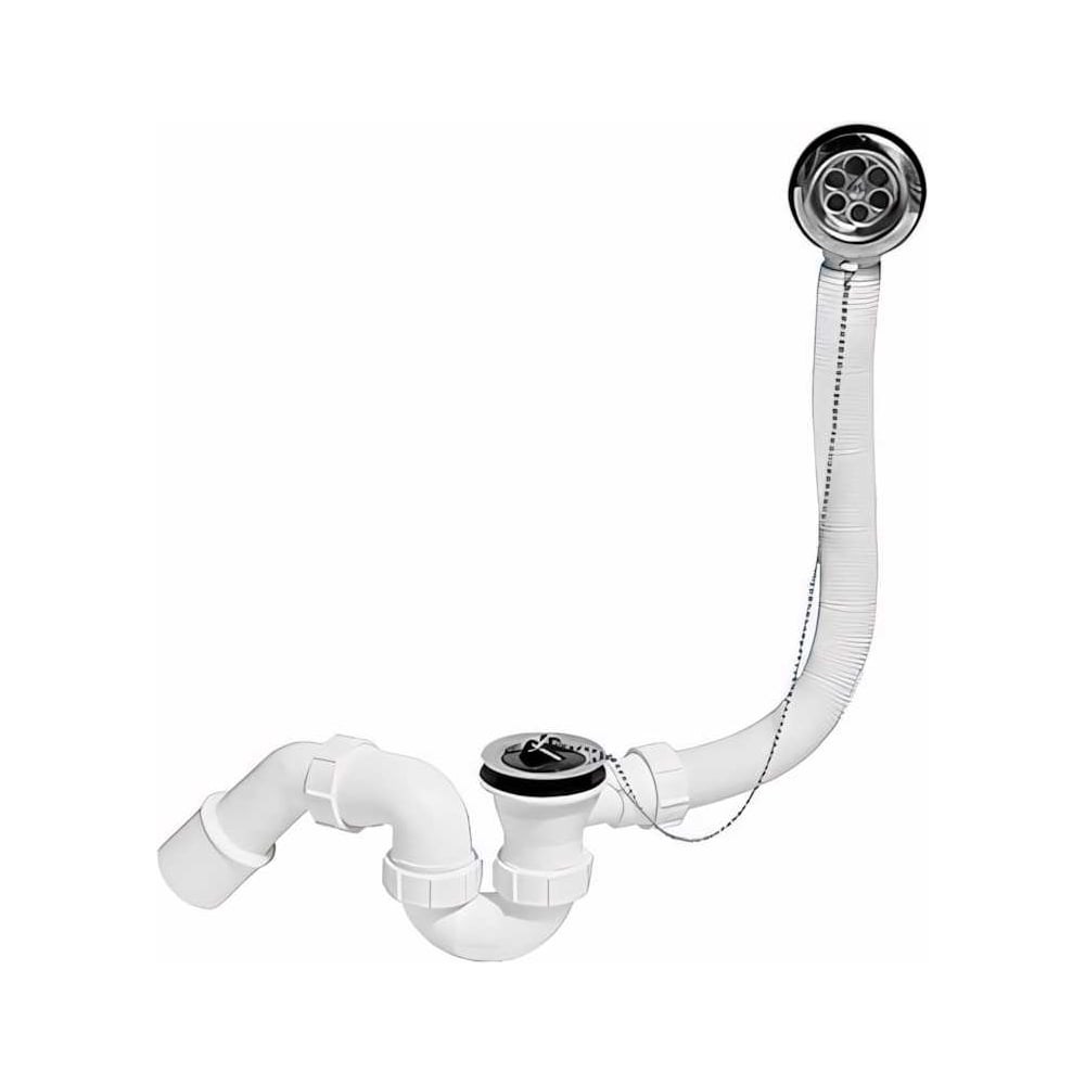 Слив-перелив McAlpine L368 х D34 мм, нержавеющая решетка, пробкой и цепочкой, выход D=40/50 мм MRB1 устанавливается для отведения воды в канализацию, а также предотвращает появление неприятных запахов. Подходит для любых ванн. Сливное отверстие закрывается с помощью пробки на цепочке, прикрепленной к переливу. Высота гидрозатвора - 50 мм. Выход - 40/50 мм. Размер - 1 1/2"х40 мм.