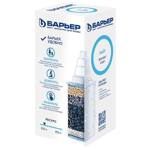 Все кассеты БАРЬЕР унифицированы: «Лайт» подходит ко всем фильтрам-кувшинам бренда, а герметичное резьбовое соединение гарантирует, что неочищенная вода не попадёт в готовый продукт.