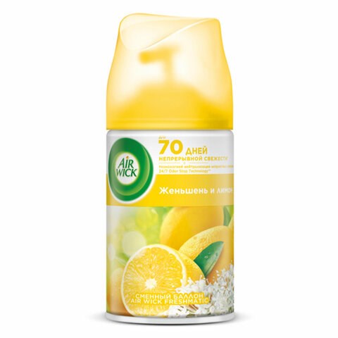 Сменный баллон 250 мл, AIRWICK "Лимон и женьшень", для автоматических освежителей, универсальный
