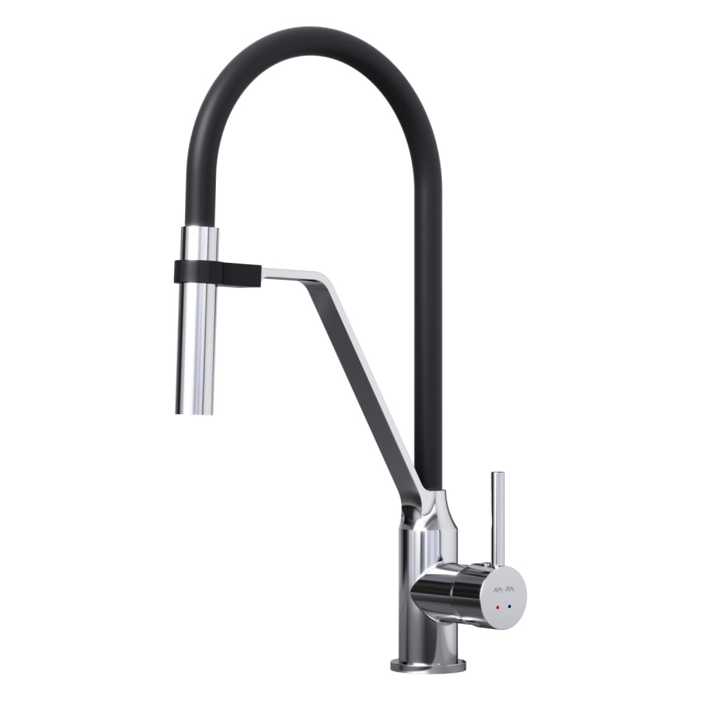Стильный и функциональный смеситель для кухни с профессиональным изливом. Гибкий излив значительно расширяет зону использования смесителя,гарантирует легкий уход за мойкой и наполнение емкостей любой высоты. Излив изготовлен из термостойкого силикона. Силикон абсолютно безопасен при контакте с водой, т.к. в составе силикона отсутствуют вредные для здоровья токсичные компоненты. Гладкий силиконовый излив устойчив к загрязнениям - легкий уход. Излив износостойкий и устойчив к перегибам. Лейка из нержавеющей стали оптимального размера для удобного хвата. Держатель излива изготовлен из ударопрочного ABS пластика, отлично переносит воздействие влаги и моющих средств. Ручка-стик сконструирована под руку, не пачкается, легко управляется и обеспечивает тонкую настройку потока.