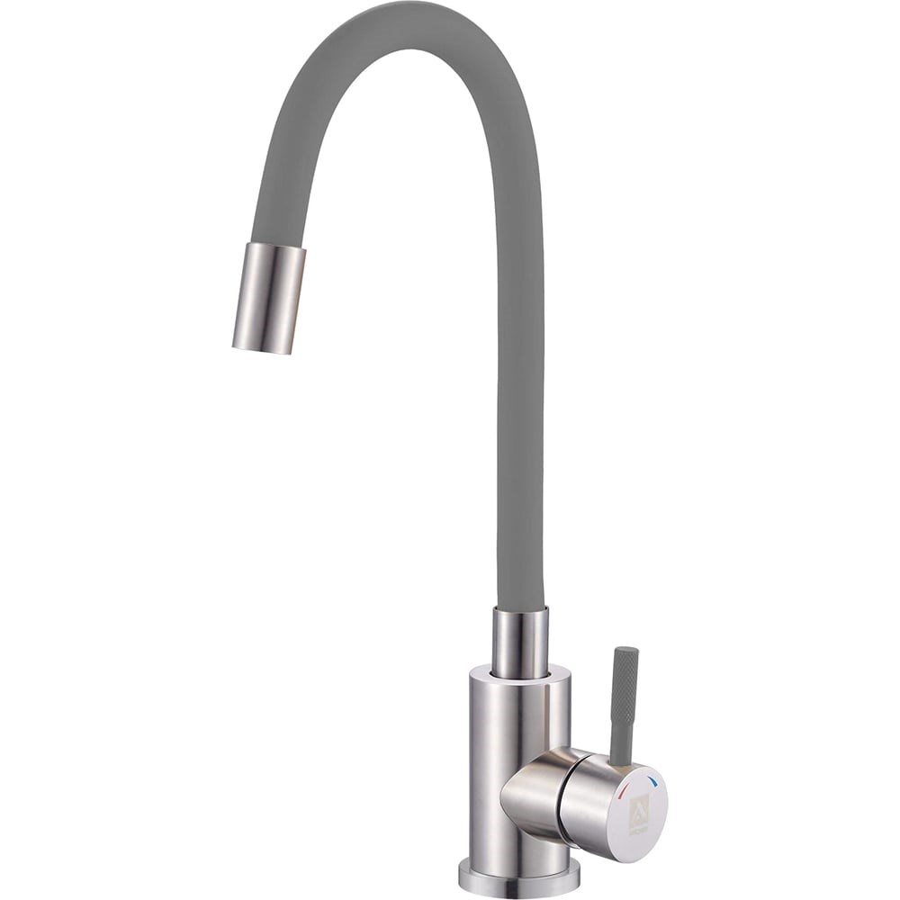 Смеситель для кухни ARGOTECH35-10 SOLID серый, пластичный излив, d-35, нержавеющая сталь 43328 легко наполняет большие ёмкости, очищает сдвоенную мойку.