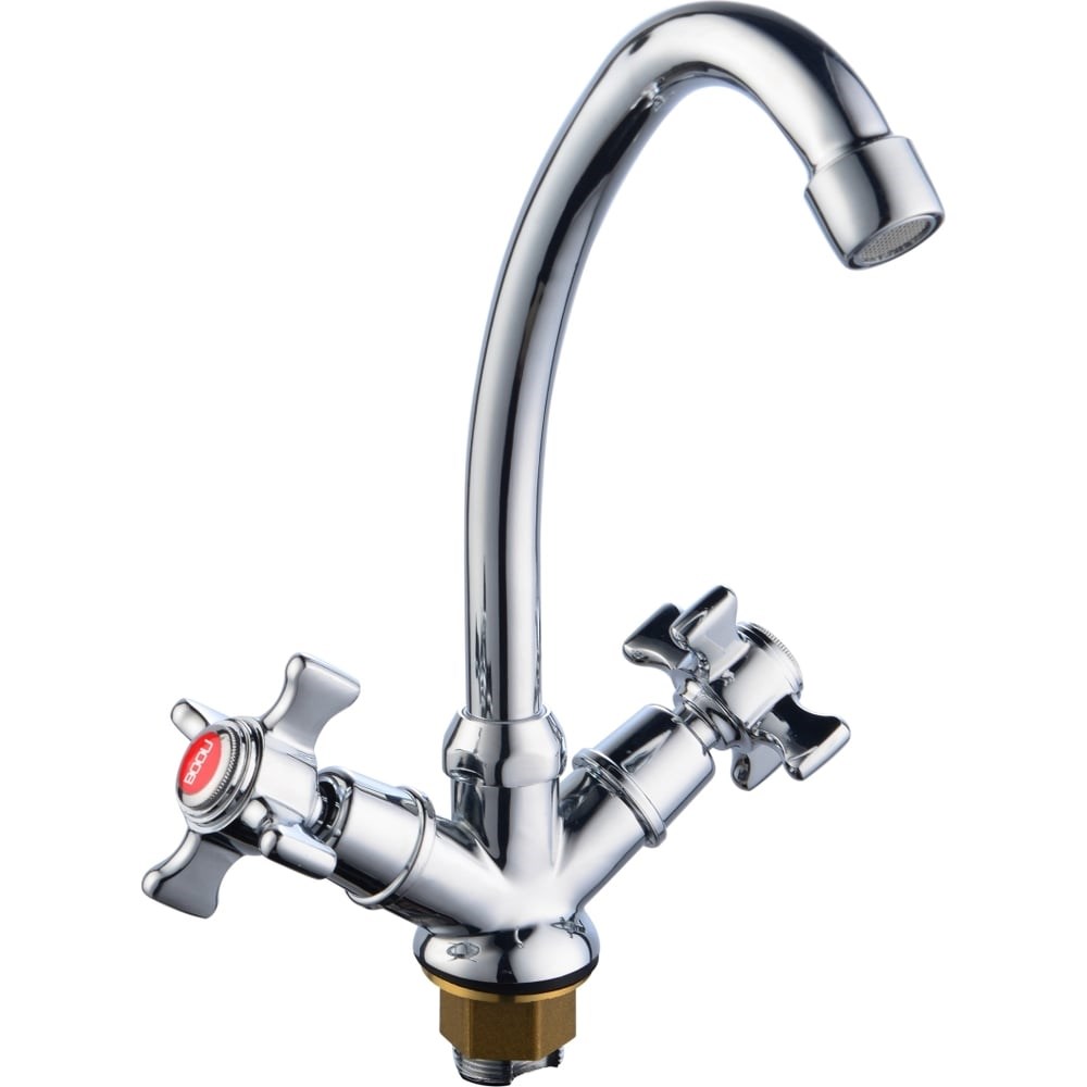 Смеситель ТМ BOOU – классическая двуручковая модель для кухонной мойки, дополнит кухню, оформленную в классическом стиле.Трубчатый излив в форме буквы J удобен для наполнения высоких емкостей и мытья габаритной посуды. При необходимости он поворачивается на 360°, высвобождая пространство над мойкой для выполнения бытовых задач.Выполнен из Латуни высокой марки, что является гарантией качества и долговечности смесителя.Фирменные технологии производства картриджей BOOU создают плавность и точность регулировки напора и температуры воды, которая сохраняется на протяжении всего срока использования.Установка смесителя крайне проста, так как предусматривает минимальное количество крепежных деталей.