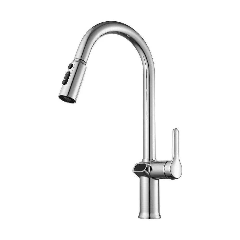 Корпус смесителя выполнен из сантехнической латуни категории "А". Керамический картридж с увеличенным запасом устойчивости к загрязнённой и жёсткой воде, настроит температуру и поток воды в одно движение. Лаконичный цифровой дисплей покрыт акриловым стеклом. Индикатор работает за счёт напора потока воды и не требует дополнительного источника питания. Данная опция делает смеситель более безопасным, позволяя контролировать температуру воды без перегревов. Хром-никелевое покрытие защищает поверхность от потускнения и изменения цвета, а также повышает ее устойчивость к истиранию. Длинный и поворотный излив смесителя позволяет свободно регулировать струю в мойке, закрывая все потребности на кухне. Выдвижной излив даёт возможность набрать воду в ёмкость, стоящую рядом с мойкой, а также облегчает мытье раковины, крупной посуды, фруктов и овощей. На конце излива расположена лейка с 3-мя режимами: аэратор, мягкие струи, турбо-струи. Монтажное крепление Fast Fix позволяет надёжно закрепить смеситель даже на тонких мойках, без использования инструментов. Смеситель идеально впишется в любой интерьер кухни и подойдет под любую мойку или раковину.