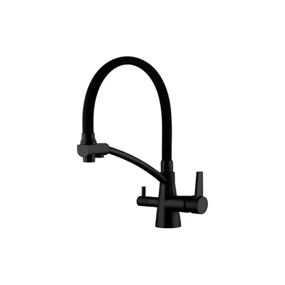 Смеситель Haiba HB76855-7 для кухни с гибким изливом и подключением фильтра, черный. Преимуществом серии является комфорт: теперь не нужно устанавливать два отдельных смесителя - для питьевой и водопроводной воды - достаточно одного смесителя, который объединяет достоинства двух изделий в одном эргономичном корпусе.