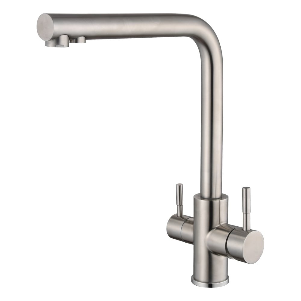 Смеситель для кухни изготовлен из нержавеющей стали высокого качества SUS 304, исключительно прочного материала, стойкого к износу и появлению коррозии. Содержание Cr (хром) — не менее 18% обеспечивает формирование на поверхности оксидного слоя и придает материалу устойчивость к действию различных химических веществ. Содержание Ni (никель) — не менее 8% гарантирует стойкость к коррозии.Благодаря специальной технологии Electroplating компоненты краски покрывают смеситель плотным, тонким, но очень прочным слоем, тщательно прокрашивая все полости и элементы.