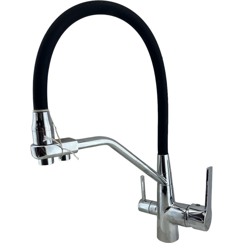 Смеситель для кухни Rainsberg с силиконовым гибким изливом, латунь R603C-2 имеет 3 раздельных входа для воды, один через фильтр для выхода холодной питьевой воды, и 2 других для выхода водопроводной (холодной и горячей) воды. Съемный гибкий излив позволяет не только промыть саму раковину, но и набрать воды, например, в кастрюлю, поставив ее рядом с раковиной, что, поверьте, весьма удобно. Рычаги управления: слева-для питьевой воды, справа-для водопроводной. Гарантия 3 года.