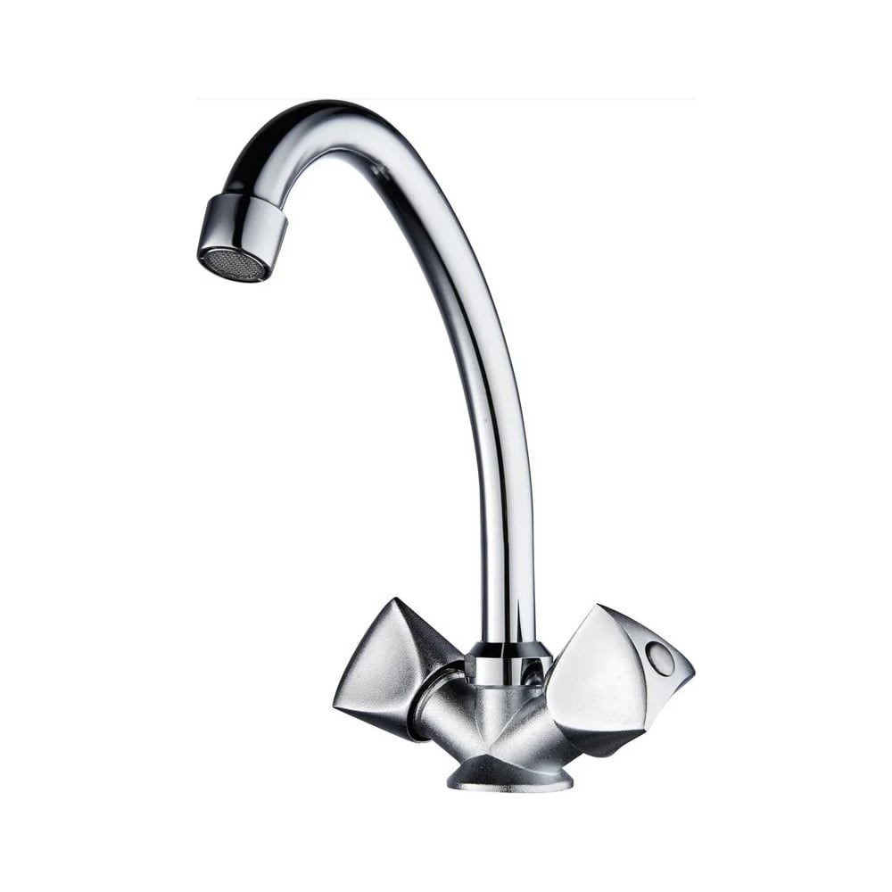 Двуручковый смеситель для кухни из данной серии обладает не отполированным хромированным корпусом и полированным изливом, удобен и практичен в использовании. Смеситель относится к группе смесителей, не предназначенных для длительного использования в системе бытового водоснабжения. По своим эксплуатационным характеристикам и цене, идеально подходит как временное решение на период ремонта квартиры, дома, дачи, а так же для других хозяйственных нужд на время дачного сезона. Установка смесителя крайне проста. Смесители РМС это сертифицированный продукт с 5-летней гарантией. Гибкая подводка 40 см идет в комплекте. Смеситель для кухни с высоким изливом. Кран-букса латунная с керамическими пластинами угол поворота 90 градусов. Поворотный излив. Аэратор: пластиковый. Покрытие: хром. Крепление: шпилька. В комплекте: гибкая подводка.