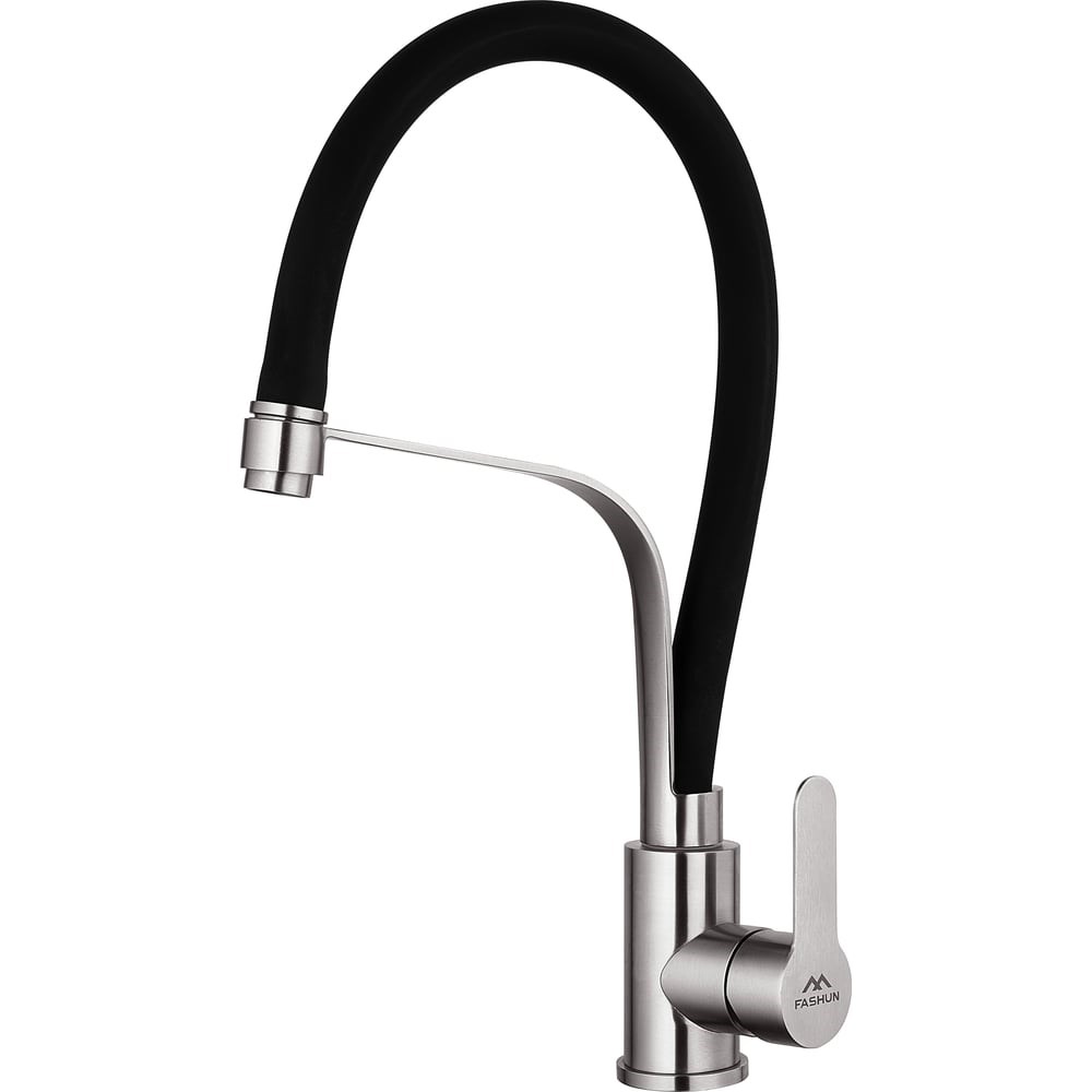 A54012-7 смеситель для кухни с фиксатором излива, H=405 мм сатин/чёрный сталь SUS304 картридж D=35 мм силиконовый гибкий излив H=235 мм гибкая подводка: 450 мм в комплекте крепёж: гайкаПредназначен для подачи и смешения холодной и горячей воды, поступающей из централизованных или местных систем холодного и горячего водоснабжения. Не предназначен для смешивания других иных жидкостей. Продукция торговой марки FASHUN соответствует общеевропейским стандартам (CE), американским стандартам (UL), международным стандартам качества (ISO). Продукция, товарный знак, упаковка, маркировка защищены патентным правом, имеют сертификаты качества.