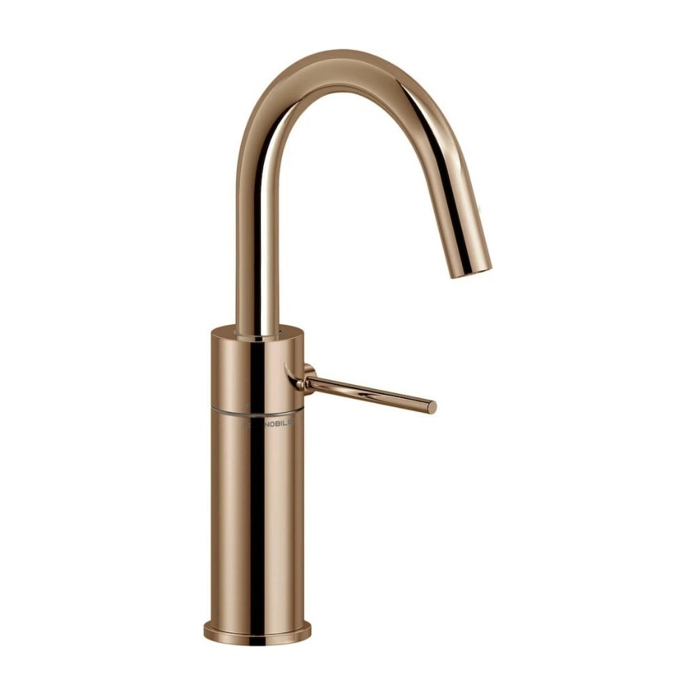 Смеситель для раковины Nobili VELIS красное золото VE125138/2RCP 00000106713 дополнительные характеристики: Ограничитель мощности с открытием в холодной воде Аэратор против известковых отложений M 18 x 1, 5 Шарнирный излив Нажимной слив ø 1 1/4” Шланг из нержавеющей стали ø 3/8” Отделка 2RCP Red canyon