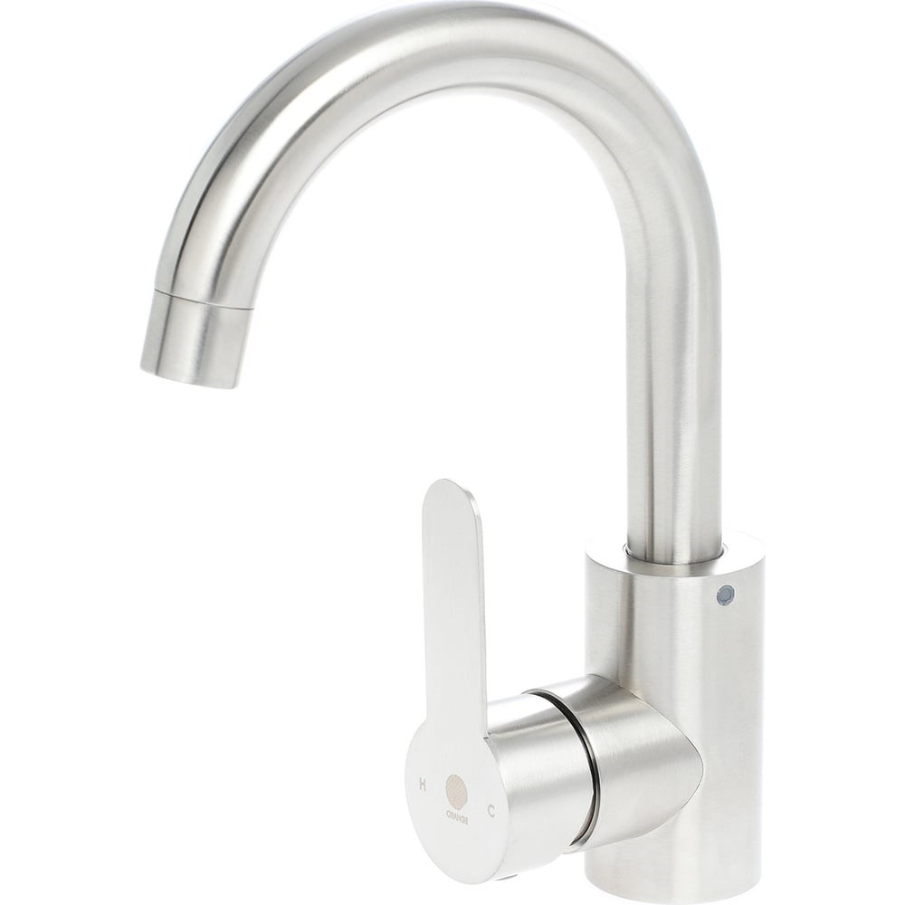 Однозахватный смеситель для раковины с поворотным изливом Orange Steel идеально впишется как в современный, так и в традиционный интерьер. Корпус выполнен из нержавеющей стали, не подверженной коррозии от длительного контакта с водой. Фирменный картридж Orange делает лёгким управление напором и температурой воды. Покрытие в цвете матовый никель, за которым очень просто ухаживать мягкой салфеткой, нанесено методом вакуумного напыления. Аэратор экономит воду и, обогащая струю воздухом, делает её мягкой, без брызг.